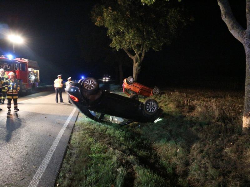 Mammendorf - Die Feuerwehr Mammendorf wurde am 20. September in den frühen Morgenstunden auf die B2 alarmiert. Zwischen Mammendorf und der Bahnüberführung Richtung Hattenhofen ereignete sich ein nicht ganz alltäglicher Unfall. Beim Eintreffen der Feuerwehr Mammendorf lagen zwei Pkws im Abstand von rund fünf Meter parallel zu einander auf dem Dach im Straßengraben.