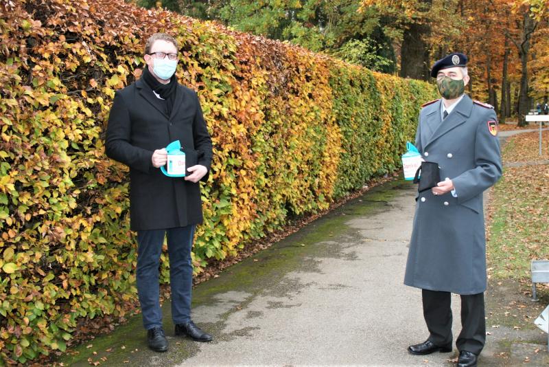 Fürstenfeldbruck - Bundeswehroffiziere des Fliegerhorstes und Vertreter der Stadt Fürstenfeldbruck haben auch in diesem Jahr an Allerheiligen gemeinsam für das Schaffen, Erhalten und die Pflege von Soldatenfriedhöfen Spenden gesammelt. Trotz der Corona-Pandemie und den damit verbundenen Hygieneregeln hatten sich auch der neue Standortälteste, Brigadegeneral Stefan Scheibl und der Bürgermeister der Stadt Fürstenfeldbruck, Erich Raff, an der Spendensammlung beteiligt.