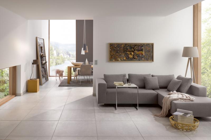 Aktuelle Fliesen schaffen modernes Wohnflair. Zugleich leitet Keramik die Wärme aus der Fußbodenheizung schnell und ohne Verluste an die Bodenoberfläche.