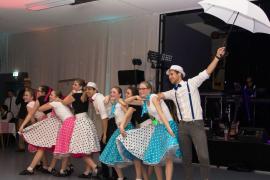 Germering - Am 14.04.18 fand in der TSV Mehrzweckhalle der diesjährige Frühjahrsball des TSV Unterpfaffenhofen statt. Der Ball stand unter dem Motto „La Dolce Vita, das Lebensgefühl der 50er Jahre“. Bei den Besuchern kam das Motto an. Viele Damen kamen im gepunkteten, bunten, schwingenden Kleid, bei den Herrn standen Lederjacken, Hüte, Hosenträger und Fliegen hoch im Kurs.